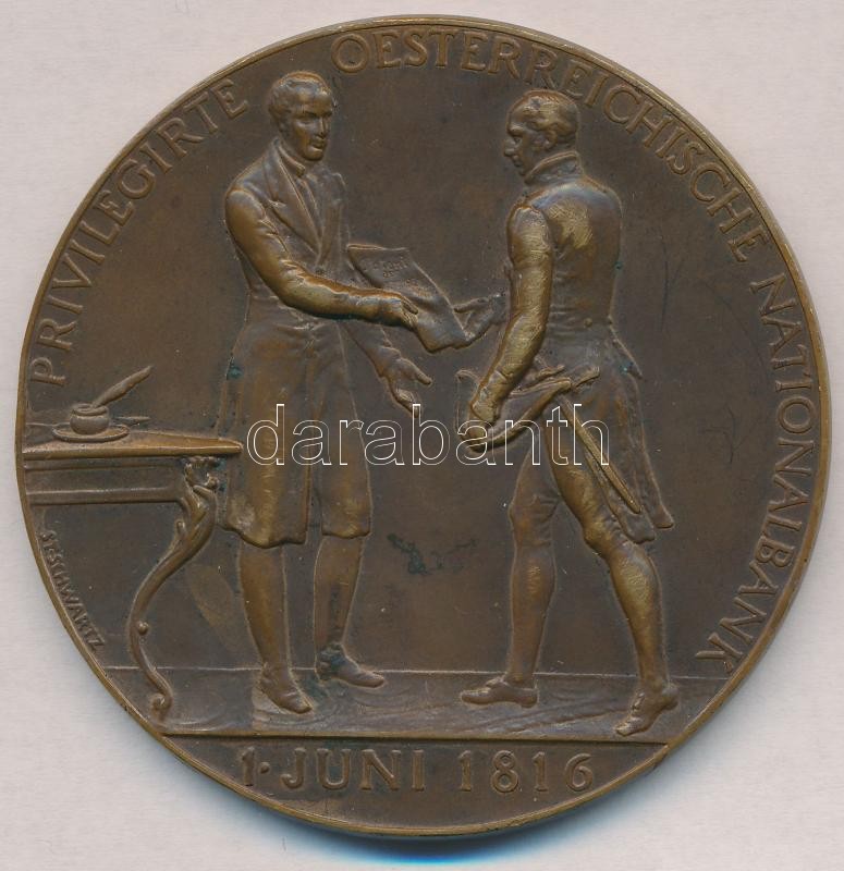 Osztrák-Magyar Monarchia 1916. "Az Osztrák Nemzeti Bank létrejöttének 100 éves évfordulója" Br emlékérem körmöcbányai verdejellel, eredeti sérült dísztokban (65mm). Szign.: Stefan Schwartz T:2