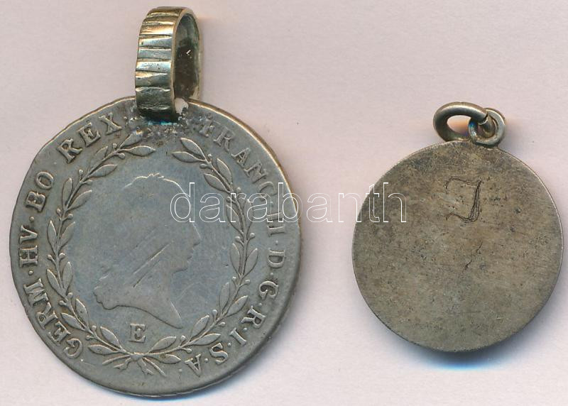 Leírás: 1804E 20kr Ag "II. Ferenc" hegesztett füllel + 1910. "I / 1910 V. 3." jelzetlen Ag medál (19mm) T:2-,3