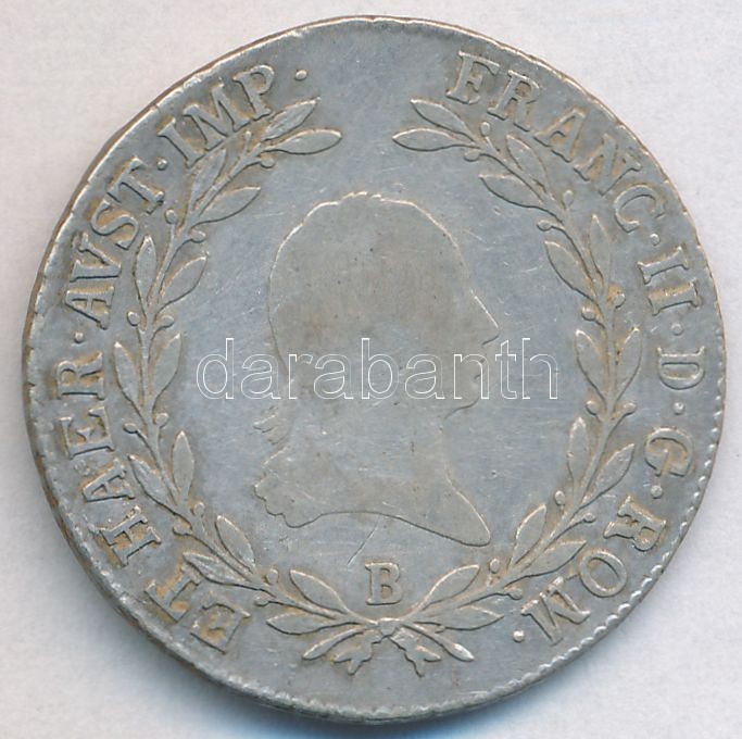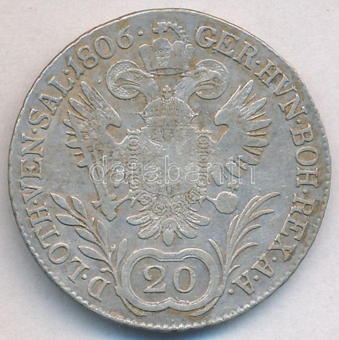 Hungary 1806B 20 K... https://www.darabanth.com/hu/299-Gyorsarveres/299.0/Numizmatika/Magyar-es-magyar-verdejelu-fem-es-ezustpenzek~400008/1806B-20kr-Ag-I-Ferenc-6-22g-T2-3--Hungary-1806B-20-Kreuzer-Ag-Franz-I-6-22g-CVF-F--Husz~II1597422