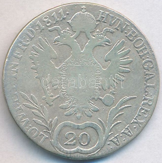 Hungary 1811B 20 Kreu... https://www.darabanth.com/hu/299-Gyorsarveres/299.0/Numizmatika/Magyar-es-magyar-verdejelu-fem-es-ezustpenzek~400008/1811B-20kr-Ag-I-Ferenc-6-43g-T3--Hungary-1811B-20-Kreuzer-Ag-Franz-I-6-43g-CF--Huszar-1~II1597402