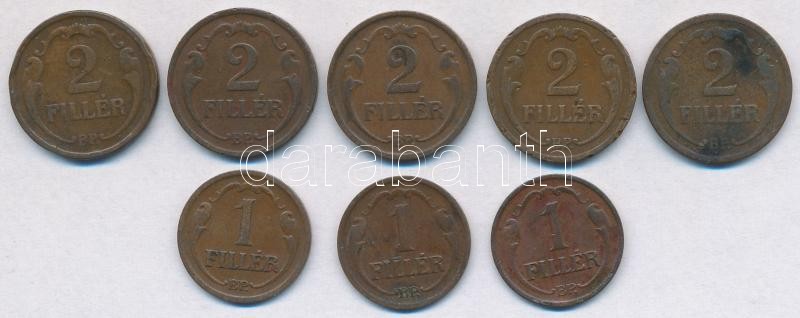 1926-1938. 2f Br (5xklf) + 1935-1938. 1f Br (3xklf) T:2-3 https://www.darabanth.com/hu/299-Gyorsarveres/299.0/Numizmatika/Magyar-es-magyar-verdejelu-fem-es-ezustpenzek~400008/1926-1938-2f-Br-5xklf-plus-1935-1938-1f-Br-3xklf-T2-3~II1568709
