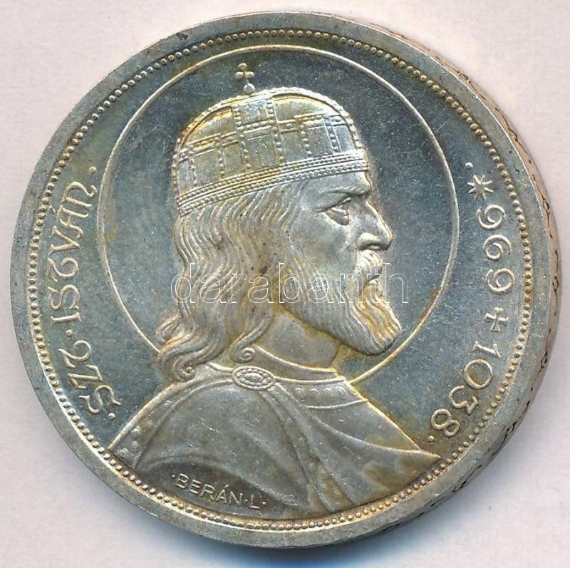 Leírás: 1938. 5P Ag "Szent István" T:1-,2 patina