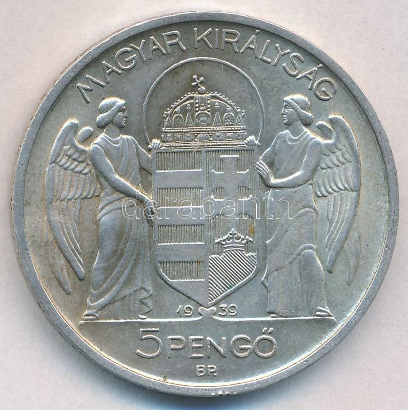 1939. 5P Ag "Horthy balra" T:1- apró ph. https://www.darabanth.com/hu/299-Gyorsarveres/299.0/Numizmatika/Magyar-es-magyar-verdejelu-fem-es-ezustpenzek~400008/1939-5P-Ag-Horthy-balra-T1-apro-ph~II1599142