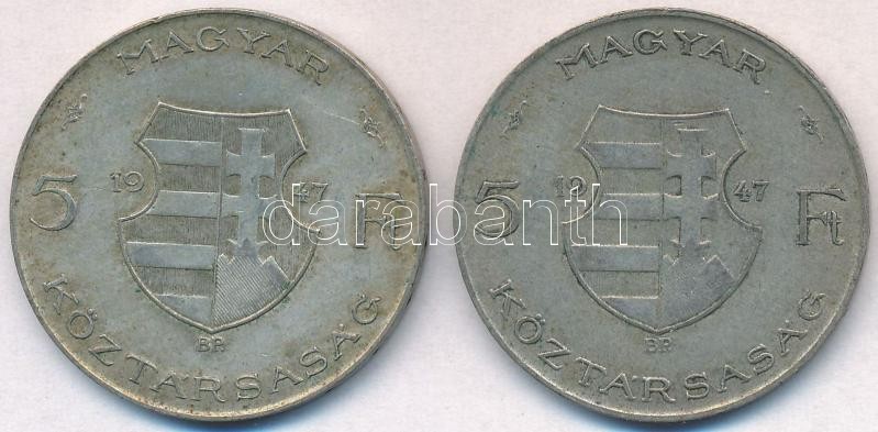 Leírás: 1947. 5Ft Ag "Kossuth" (2x) T:2,2- patina