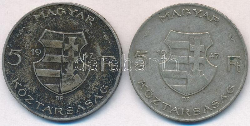 Leírás: 1947. 5Ft Ag "Kossuth" (2x) T:2,2- patina