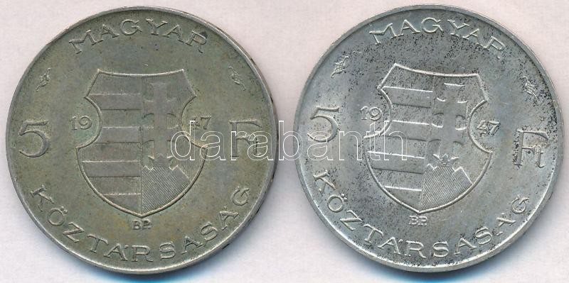 Leírás: 1947. 5Ft Ag "Kossuth" (2x) T:2,2- patina