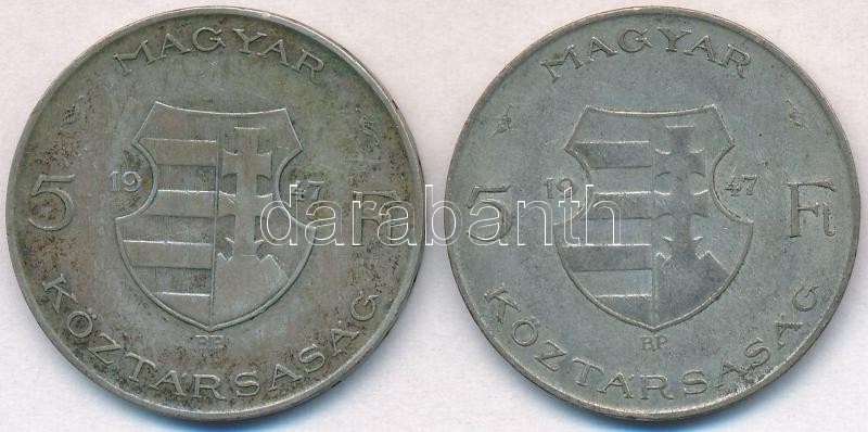 Leírás: 1947. 5Ft Ag "Kossuth" (2x) T:2-,3