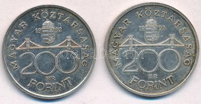1992. 200Ft Ag "MNB" (2x) T:2 kis patina
