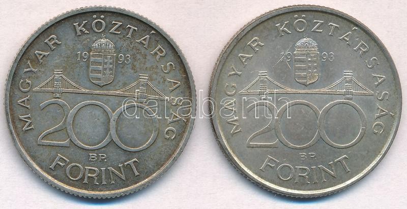Leírás: 1993. 200Ft Ag "MNB" (2x) T:2 patina