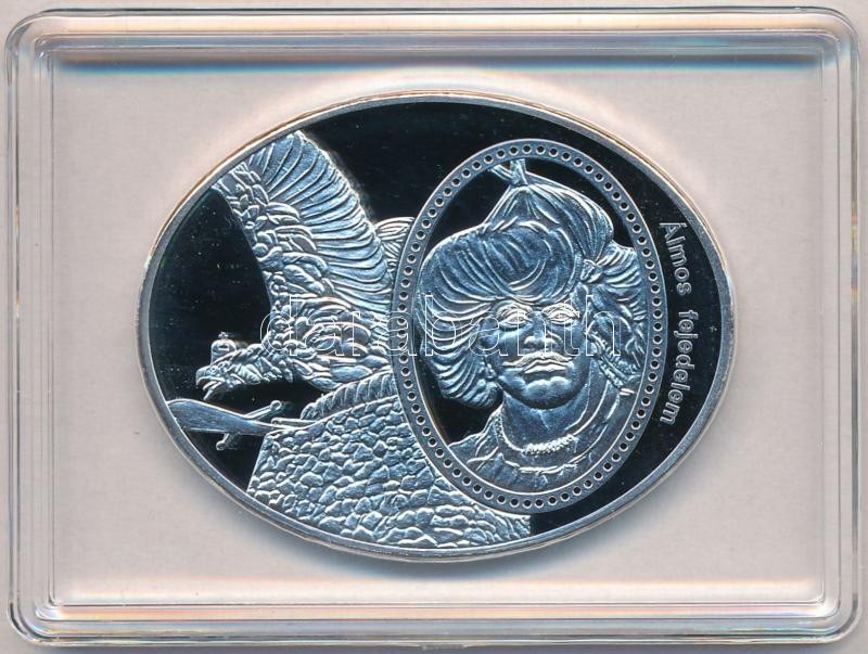 Leírás: DN "Hazám, hazám, te mindenem / Legendás épületek - Álmos fejedelem / Tatabányai Turul-emlékmű" ezüstözött Cu emlékérem tanúsítvánnyal (46x36mm) T:PP