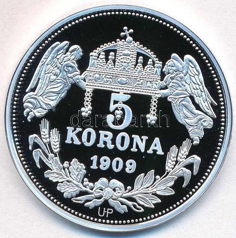 Leírás: DN "Királyi koronák - III. László 5 korona 1909" Ag emlékérem tanúsítvánnyal (20g/0.999/38,61mm) T:PP