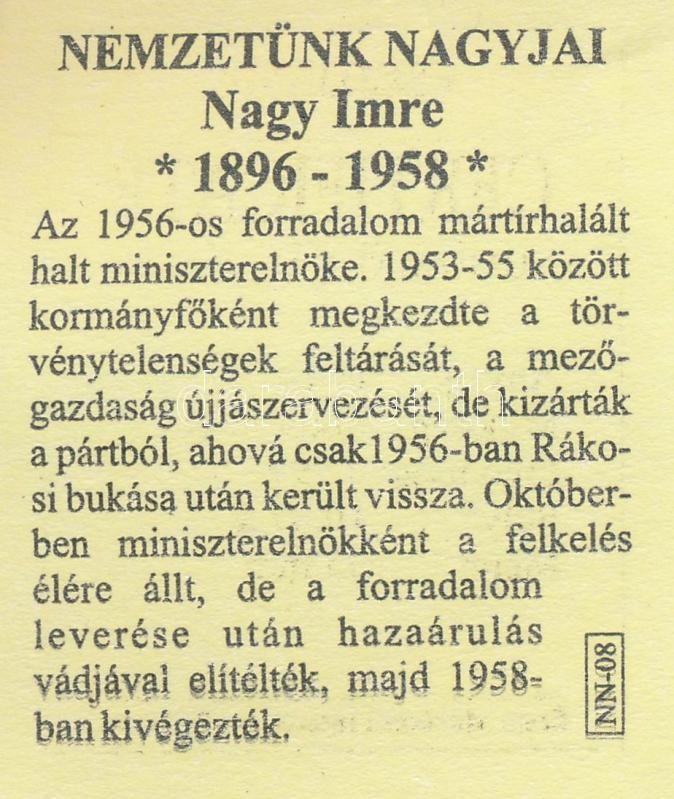 DN "Nemzetünk Nagyjai - "Csapataink harcban állnak..." - Nagy Imre / Isten áldd meg a magyart!" Ag emlékérem tanúsítvánnyal (10,37g/0.999/35mm) T:PP kis patina