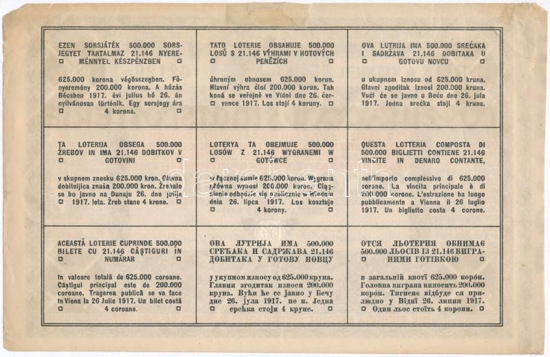 Leírás: Ausztria / Bécs 1917. "XXXII. Staatslotterie" lottó sorsjegy 4K értékben, szárapecséttel T:II-,III ragasztott
