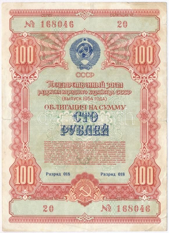 Leírás: Szovjetunió 1954. 100R sorsjegy T:III