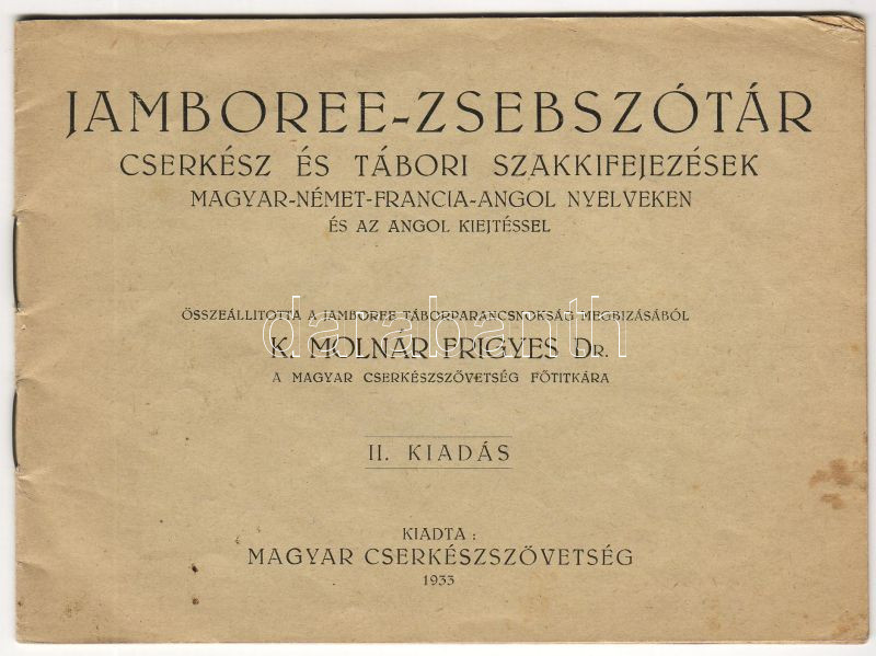 1933 Jamboree zsebszótár/Taschenwörterbuch https://www.darabanth.com/hu/3-Nagyaukcio/3.1/Mutargy-papirregiseg/Cserkesz-Pfadfinder~904/1933-Jamboree-zsebszotarTaschenworterbuch~II67503