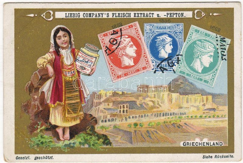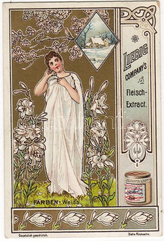 ca. 1900. 444 db Liebig szines litho reklámkártya főleg 6 db-os teljes sorozatokban, klf. témákban / 444 Stk. Liebig color Litho Werbekarten, zumeist in Serien von 6 Karten, gute Motive