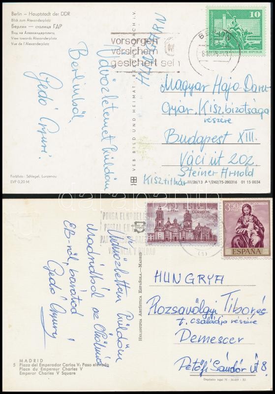 Leírás: cca 1975 Gedó György (1949- ) olimpiai bajnok ökölvívó üdvözlő sorai és aláírása 2 db levelezőlapon + kapcsolódó MTI-fotó