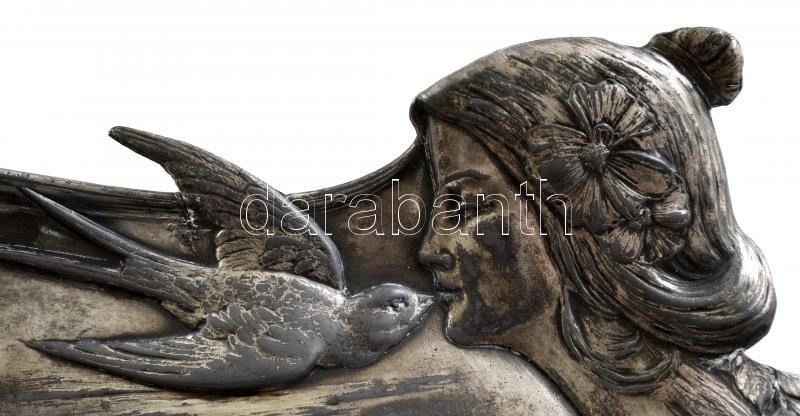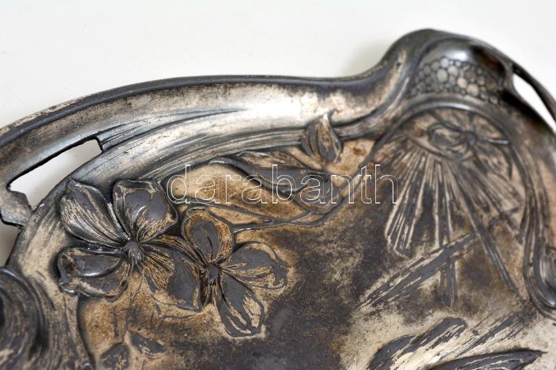 Leírás: Royal Zinn szecessziós ón tálca, jelzett, apró horpadással, 27×17 cm