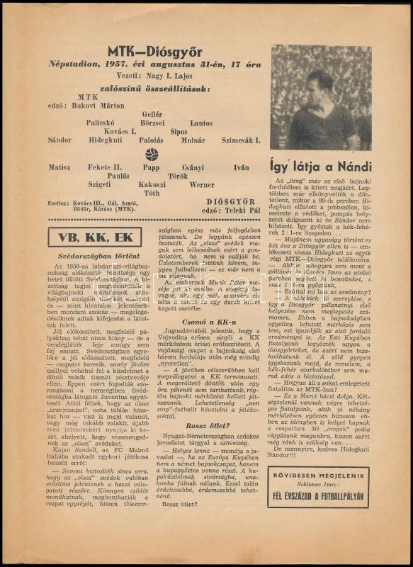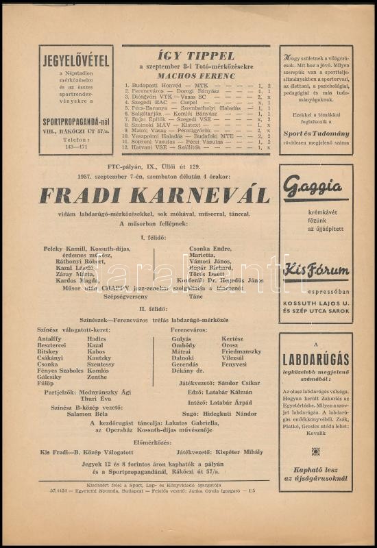 Leírás: 1957 a Népstadion híradó 1. lapszáma, érdekes írásokkal