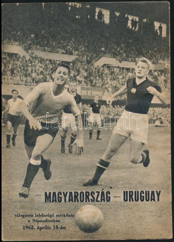 1962 Magyarország-Uruguay válogatott labdarúgó mérkőzés műsorfüzet, ér... https://www.darabanth.com/hu/30-Nagyaukcio/30.1/Festmeny-mutargy-papirregiseg-egyeb/Nyomtatvanyok~12197/1962-Magyarorszag-Uruguay-valogatott-labdarugo-merkozes-musorfuzet-erdekes-irasokkal-t~II1854040