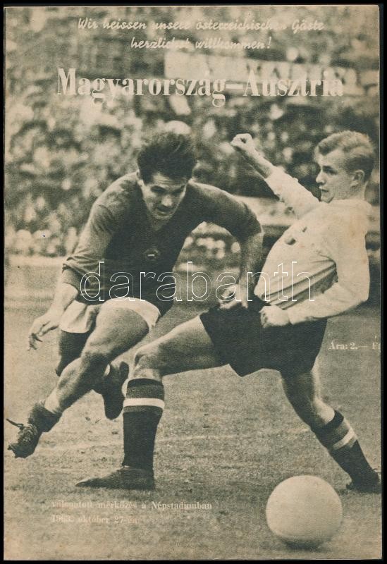 1963 Magyarország-Ausztria válogatott labdarúgó mérkőzés műsorfüzet, é... https://www.darabanth.com/hu/30-Nagyaukcio/30.1/Festmeny-mutargy-papirregiseg-egyeb/Nyomtatvanyok~12197/1963-Magyarorszag-Ausztria-valogatott-labdarugo-merkozes-musorfuzet-erdekes-irasokkal-~II1854027