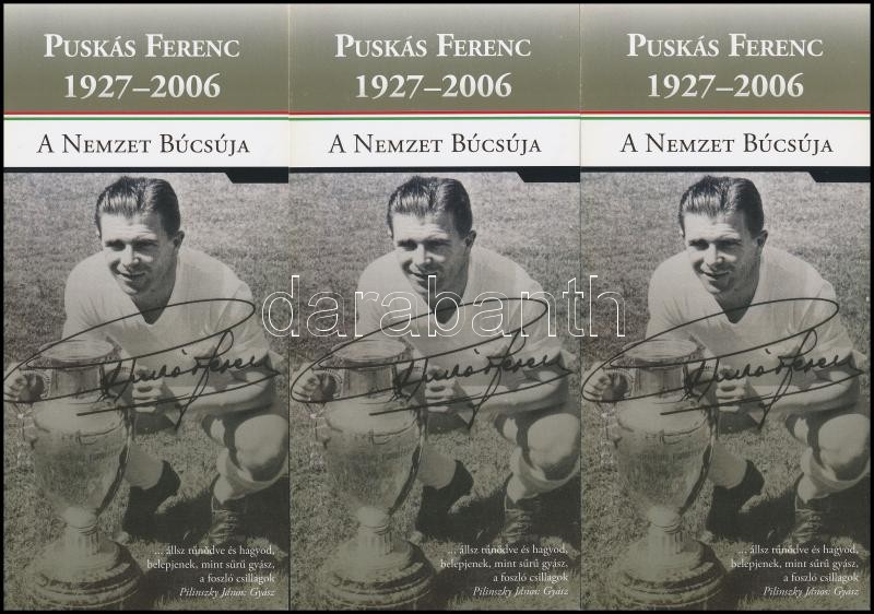 2006 Puskás Ferenc (1927-2006) "A Nemzet Búcsúja" - 3 db sor... https://www.darabanth.com/hu/30-Nagyaukcio/30.1/Festmeny-mutargy-papirregiseg-egyeb/Nyomtatvanyok~12197/2006-Puskas-Ferenc-1927-2006-A-Nemzet-Bucsuja-3-db-sorszamkoveto-meghivo-emleklap~II1855701