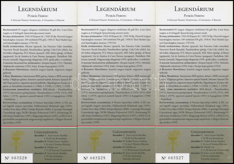 Leírás: 2006 Puskás Ferenc (1927-2006) "A Nemzet Búcsúja" - 3 db sorszámkövető meghívó / emléklap