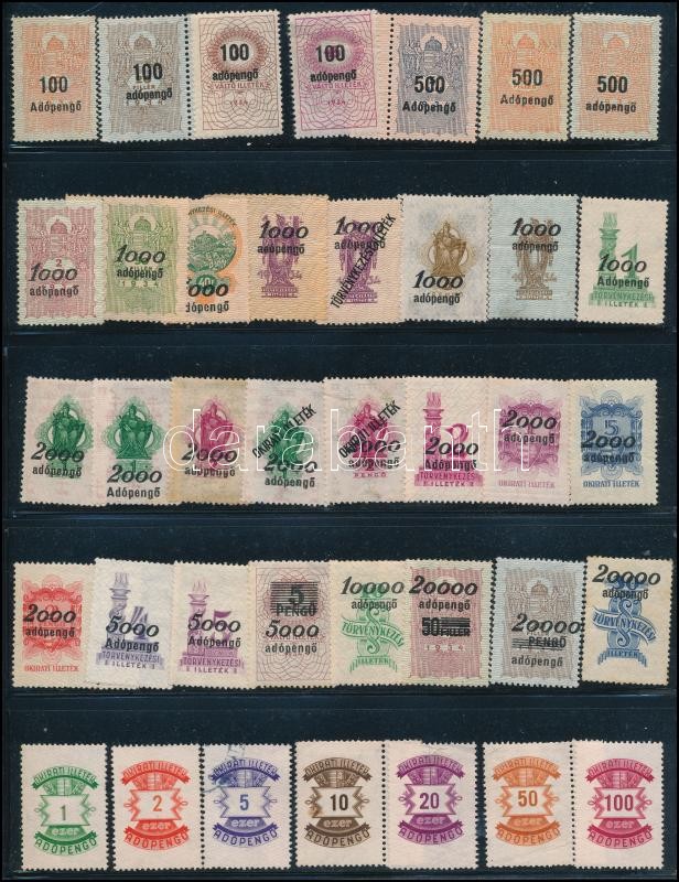 1946 38 klf adópengő névértékű okmánybélyeg / 38 different fiscal stam... https://www.darabanth.com/hu/30-Nagyaukcio/30.1/Festmeny-mutargy-papirregiseg-egyeb/Okmanybelyegek~12185/1946-38-klf-adopengo-neverteku-okmanybelyeg-38-different-fiscal-stamps~II1848368