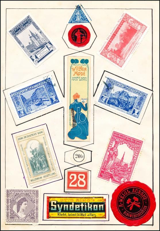 Leírás: Több mint 400 db levélzáró 1870-1920 közötti időszakból, rendkívül változatos anyag, sok szecessziós, közte ritkább darabok régi füzetbe ragasztva