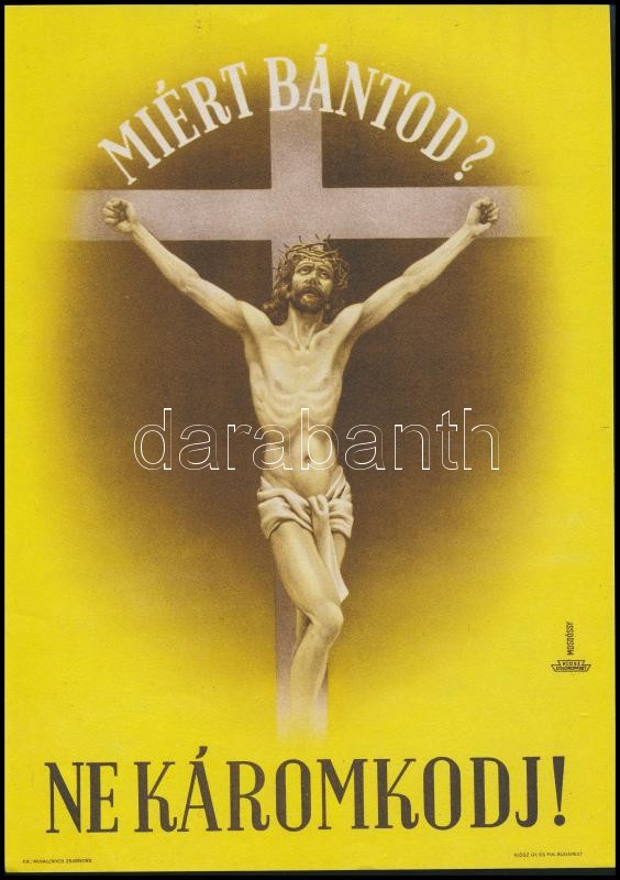 cca 1930 Mosdóssy Imre (1904-1995): Miért bántod? Ne káromkodj! villam... https://www.darabanth.com/hu/30-Nagyaukcio/30.1/Festmeny-mutargy-papirregiseg-egyeb/Plakat~12198/cca-1930-Mosdossy-Imre-1904-1995-Miert-bantod-Ne-karomkodj-villamosplakat-Klosz-Coloroff~II1853877