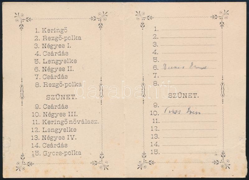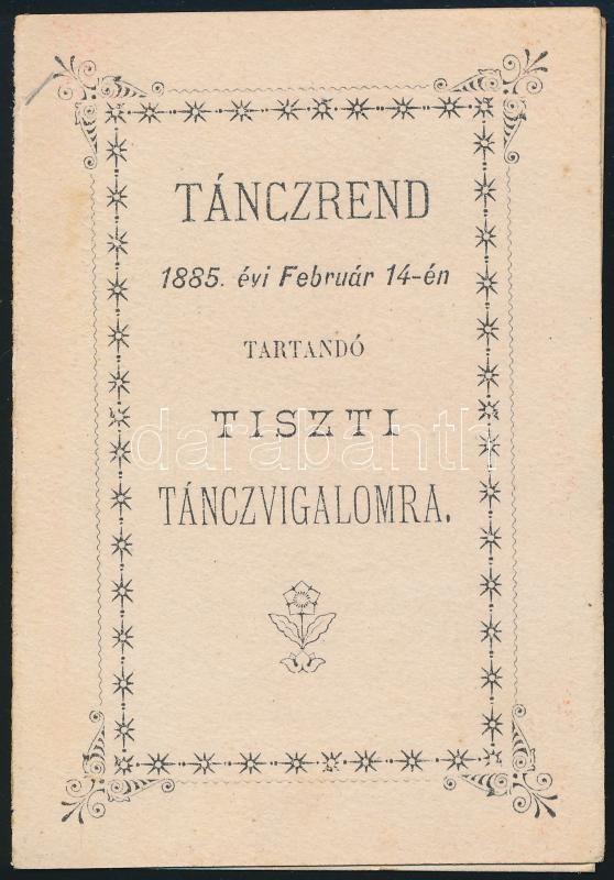 1885 Táncrend tiszti táncvigalomra. 6x8,5 cm https://www.darabanth.com/hu/30-Nagyaukcio/30.1/Festmeny-mutargy-papirregiseg-egyeb/Tortenelmi-dokumentumok-keziratok-erdekessegek~12611/1885-Tancrend-tiszti-tancvigalomra-6x8-5-cm~II1860574