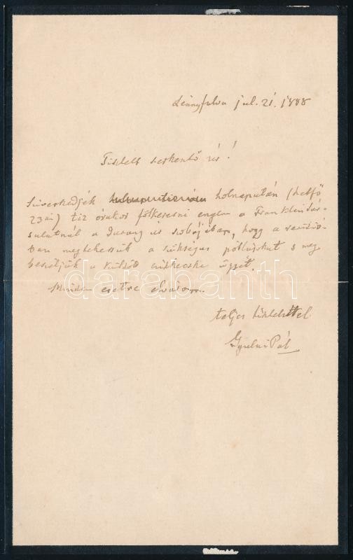 1888 Leányfalu, Gyulai Pál (1926-1909) irodalomtörténész kézzel írt, a... https://www.darabanth.com/hu/30-Nagyaukcio/30.1/Festmeny-mutargy-papirregiseg-egyeb/Tortenelmi-dokumentumok-keziratok-erdekessegek~12611/1888-Leanyfalu-Gyulai-Pal-1926-1909-irodalomtortenesz-kezzel-irt-azonositatlan-szerkeszt~II1865622