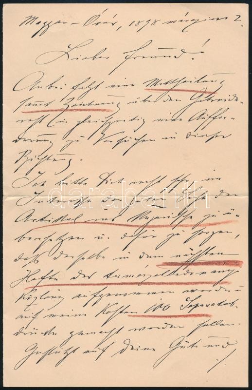 1898 Linhart György (1844-1925) botanikus, mikológus saját kézzel írt levele Mágócsy-Dietz Sándor (1855-1945) botanikusnak gombákról német nyelven / Letter about funghi