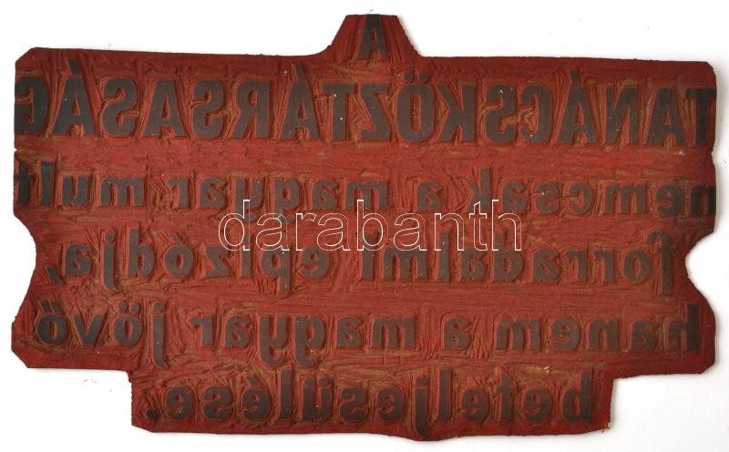 Leírás: 1919 Linóleum nyomólemez röplapok készítéséhez a Tanácsköztérsaség idejéből, 15×25 cm