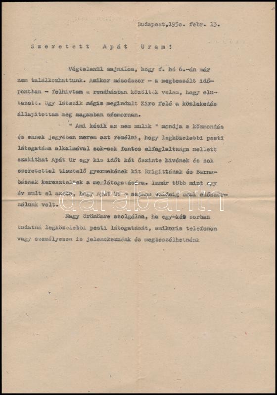 1949-1950 Endrédy Vendel (1895-1981) zirci apát levelezése, 6 db https://www.darabanth.com/hu/30-Nagyaukcio/30.1/Festmeny-mutargy-papirregiseg-egyeb/Tortenelmi-dokumentumok-keziratok-erdekessegek~12611/1949-1950-Endredy-Vendel-1895-1981-zirci-apat-levelezese-6-db~II1855731