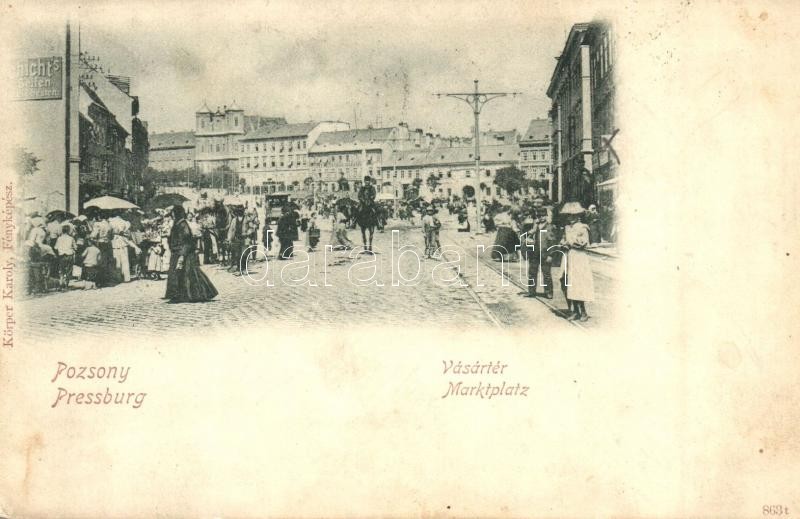 1900 Pozsony, Pressburg, Bratislava; Vásár tér, piac. Körper Károly ki... https://www.darabanth.com/hu/30-Nagyaukcio/30.1/Kepeslapok/Felvidek~12507/1900-Pozsony-Pressburg-Bratislava-Vasar-ter-piac-Korper-Karoly-kiadasa-market-square~II1857056