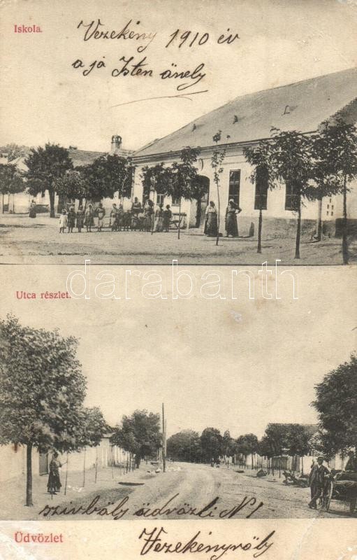 Leírás: 1910 Pozsonyvezekény, Vezekény, Vozokany; iskola, utca / school, street (r)