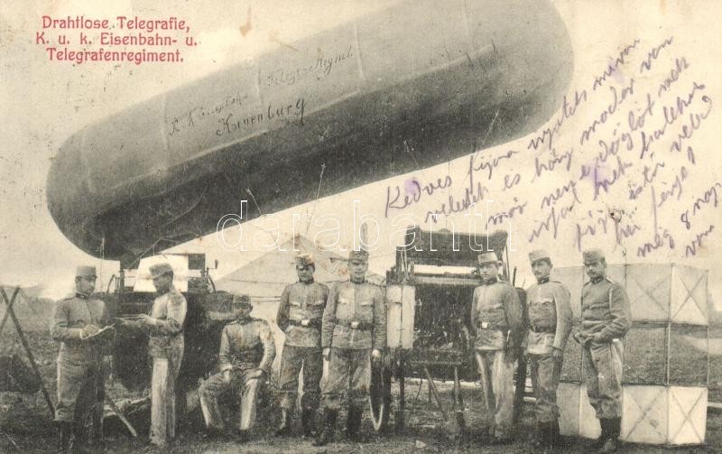 1907 Cs. és kir. vasúti és távirati ezred katonái vezeték nélküli távíróval és ballonnal / Drahtlose Telegrafie, K.u.K. Eisenbahn- und Telegrafenregiement Korneuburg / Wireless Telegraphy with balloon, Austro-Hungarian Railway and Telegraphy Regiment (EK)