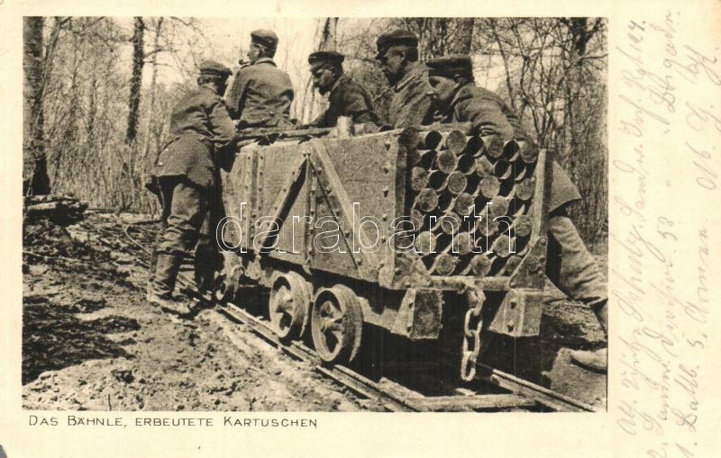 Leírás: 1915 Das Bähnle, Erbeutete Kartuschen / WWI German military, Captured Cartridges on military railway line (EK)