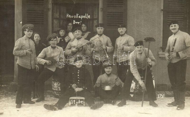 1915 Hauskapelle Brr! / WWI German military, soldiers' music band... https://www.darabanth.com/hu/30-Nagyaukcio/30.1/Kepeslapok/Katonai~12586/1915-Hauskapelle-Brr-WWI-German-military-soldiers-music-band-humour-group-photo~II1865024