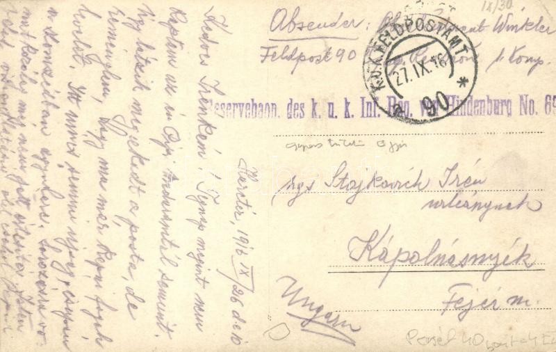 Leírás: 1916 Gyorstüzelő ágyú a harctéren löveggel / WWI K.u.k. military, rapid fire cannon with shell. photo + Reservebahn. des k.u.k. Inf. Reg. von Hindenburg No. 69. (EK)