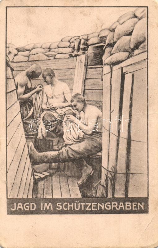 1917 Jagd im Schützengraben / WWI K.u.k. military, soldiers in trench ... https://www.darabanth.com/hu/30-Nagyaukcio/30.1/Kepeslapok/Katonai~12586/1917-Jagd-im-Schutzengraben-WWI-Kuk-military-soldiers-in-trench-fa~II1865382
