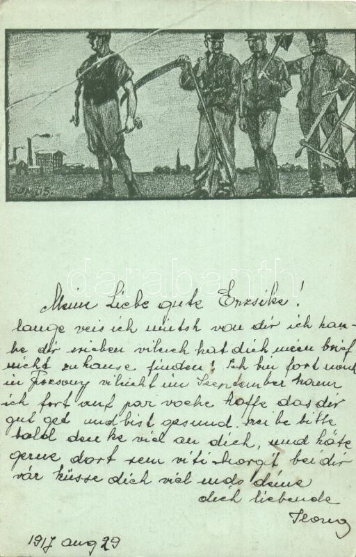 1917 Országos Hadigondozó Kiállítás, Pozsonyi fémipari szakiskola. Angermayer Károly kiadása / Hungarian National Military Care Exhibition in Bratislava s: Somos (EB)