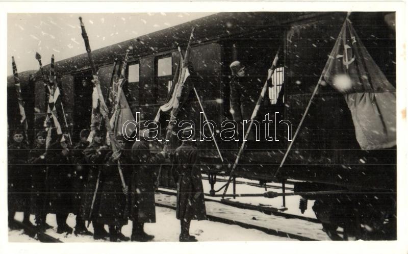 1941 Lavochne, Lavoczne; az 1848-49-es szabadságharci zászlók ünnepélyes hazahozatala Oroszországból, zászlók átvetele a vasútállomáson / Russia returns the flags of the 1849-49 Hungarian war of independence, ceremony at the railway station
