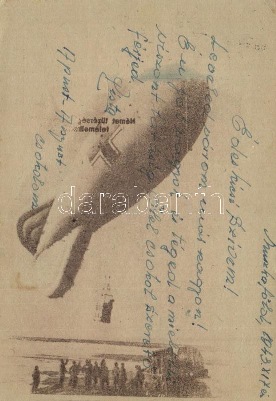 Leírás: 1943 Muszkaföld. Német léghajó. Tábori Postai Levelezőlap / WWII Hungarian military field post. German airship (EK)