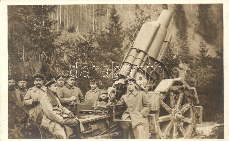 Első világháborús hegyi ágyú osztrák-magyar és német katonákkal / WWI K.u.k. military, mountain cannon with German and Austro-Hungarian soldiers. photo