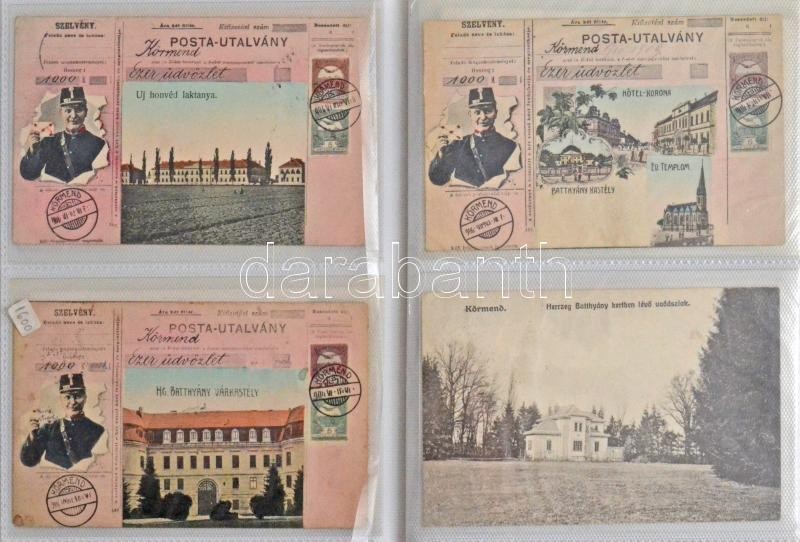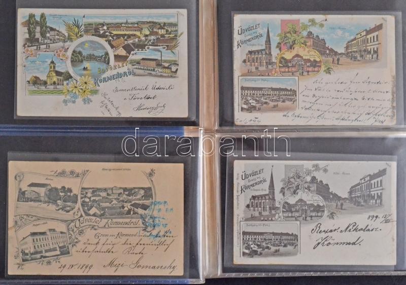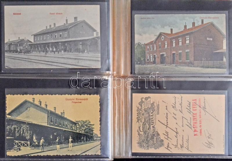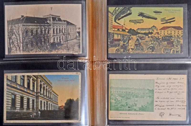 KÖRMEND - Gyűjtői képeslapanyag kb. 900 db lappal. Kb. 550 db 1945 előtti lap. Két albumban igazán érdekes és izgalmas anyaggal, köztük litho nyomatok, eredeti fotók, montázslapok (pl. a jövőben), W.L. kiadások, reklámok, ritka 1900 előtti és utáni részletek a városból. Két dobozban pedig rendszerezve a városképes lapok nevezetességek, utcák és épületek szerint. Változatos szép anyag, a lapok komoly része önálló árverési tétel is lehetne! Két albumban és két dobozban / Postcard collection with cca. 900 cards. Cca. 550 pre-1945 postcards. Two albums contain the most interesting and beautiful cards with many lithos, original photos, montages (in the future), advertisements, rare views and details before and after 1900 and some W.L. editions. The other town-view postcards are organized by sights, streets and buildings. Nice and varied collection, most of the postcards can be listed individually. 2 albums and 2 boxes