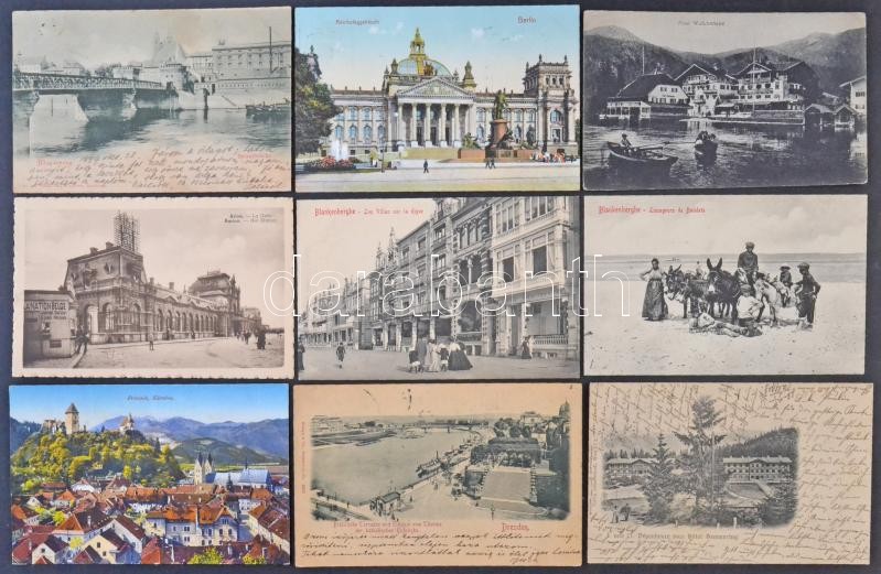 Leírás: Régi európai városképes lapok cipős dobozban, több mint 650 db / Lot of more than 650 old European city view postcards in a box