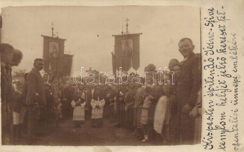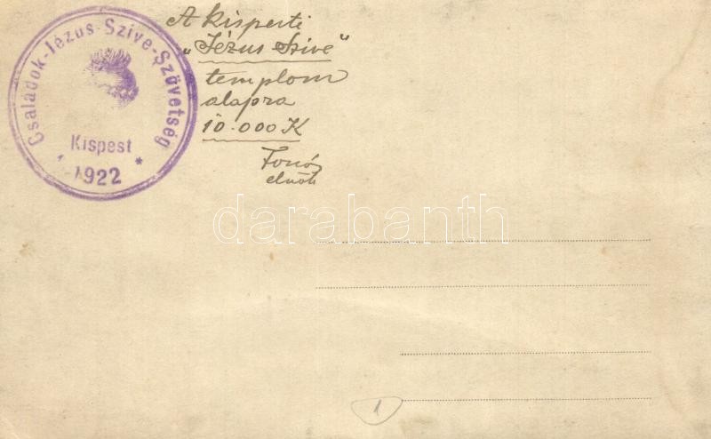 1922 Budapest XIX. Kispest, Az építendő Jézus-Szíve templom helyét jelző kereszt felszentelési ünnepének emlékére + Családok Jézus Szíve Szövetség pecsét / consecration ceremony of the cross which stands in the place of the church to be built. photo