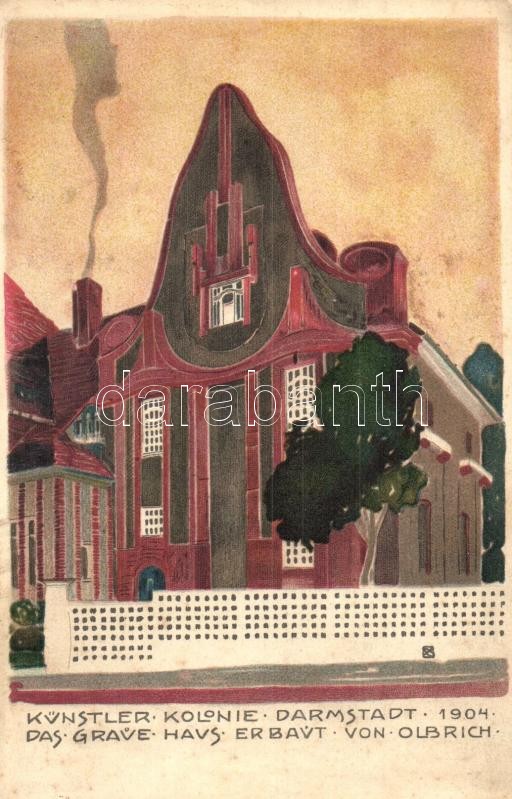 1904 Künstler Kolonie Darmstadt. Das Graue Haus erbaut von Olbrich. Officielle Postkarte No. IV. Ausstellung 1904. H. Lautz litho s: Josef Maria Olbrich (EK)